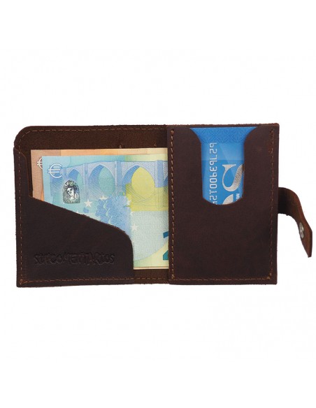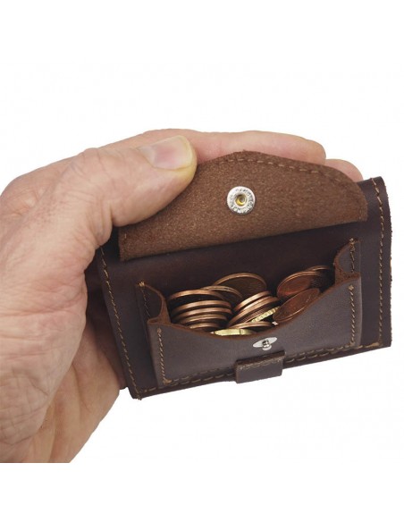 Small card-size wallet made entirely by hand where all the pieces are made of leather, which makes it a wallet of the highest quality and we guarantee a long durability.