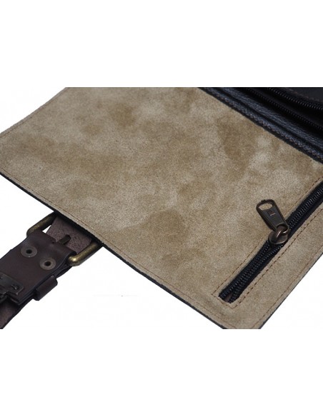 Two interior pockets, one as a divider closed with a snap and the other with a zip closure. These pockets are made of leather that guarantee long durability.