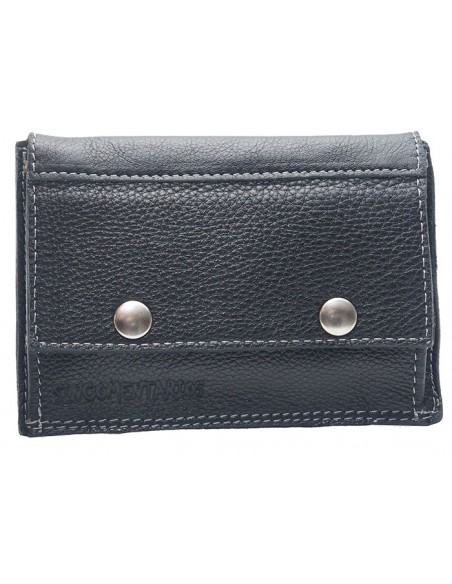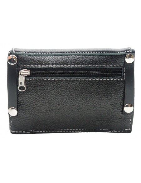 Monedero grande fabricado con pieles blandas y que consta de una gran apertura y un bolsillo trasero con cremallera.