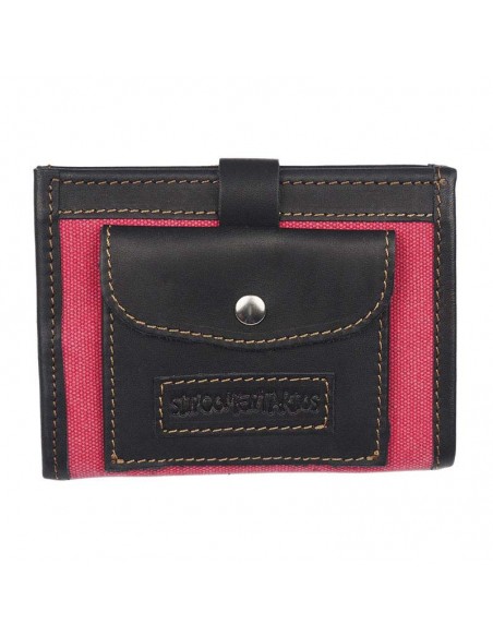 Monedero cerrado con una tapa y un broche en la parte exterior trasera.