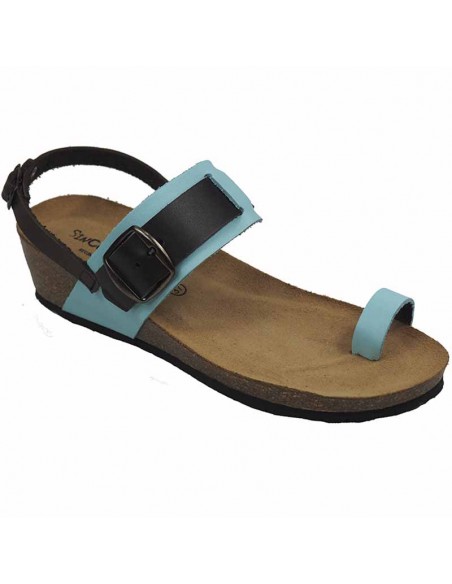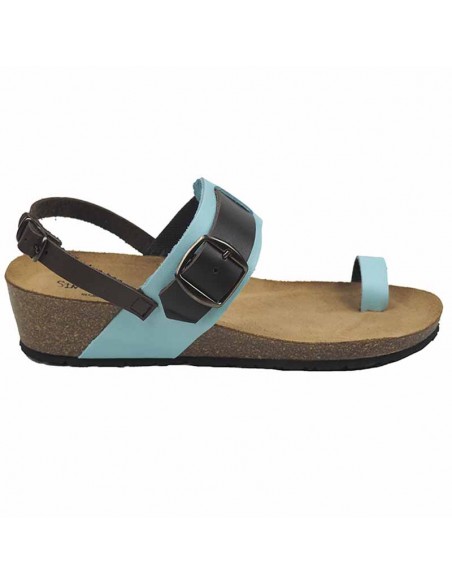 Sandalia de corcho anatómica cuña 1/2 con tira central regulable con hebilla y tira de dedo.