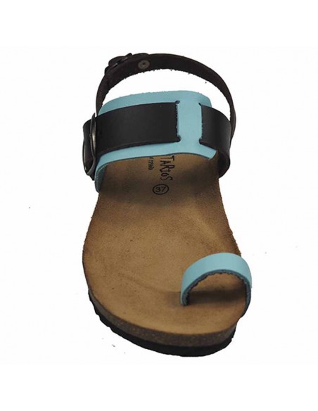 Sandalia anatómica con plantilla de corcho forrada de piel vuelta que es extremadamente confortable.