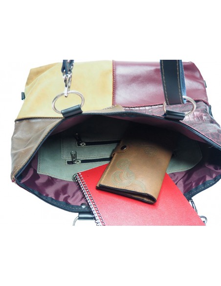 Bolso con la posibilidad de llevar de mochila que está fabricado en piel y tiene 4 compartimentos.