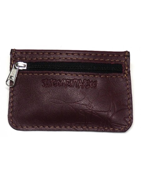 Monedero de piel con dos compartimentos cerrado con cremallera, uno a cada lado.