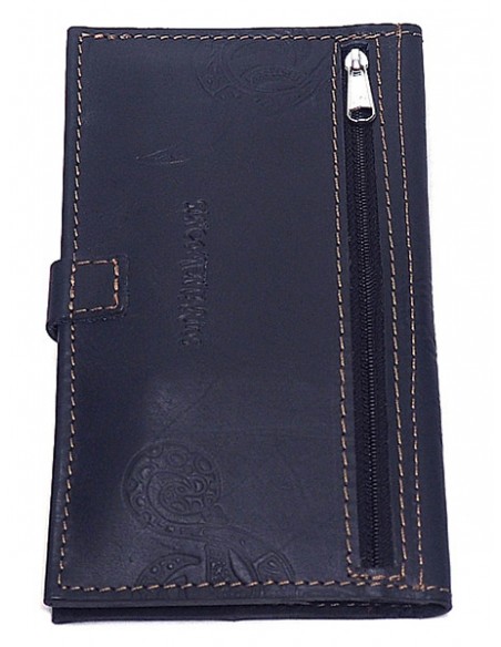 Cartera estilo rustico fabricada con pieles engrasadas gruesas que en el interior consta de seis compartimentos para tarjetas y un billetero.
