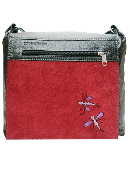 Bolso de Bandolera hecho con pieles blandas y que la solapa es de piel vuelta.
