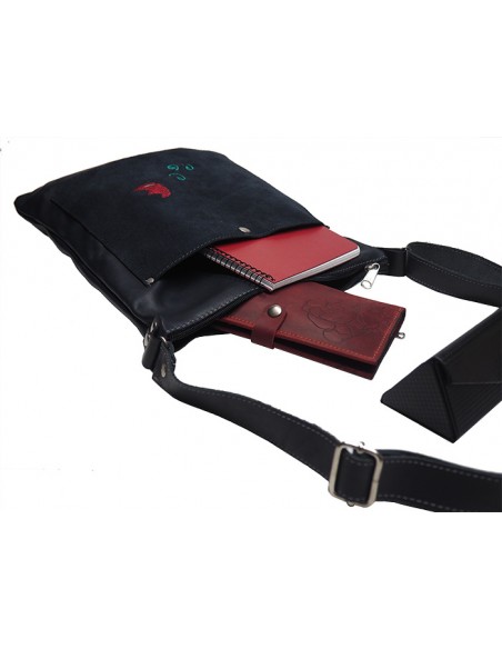 Bolso bandolera de piel en colores marrón o negro con 4 compartimentos.