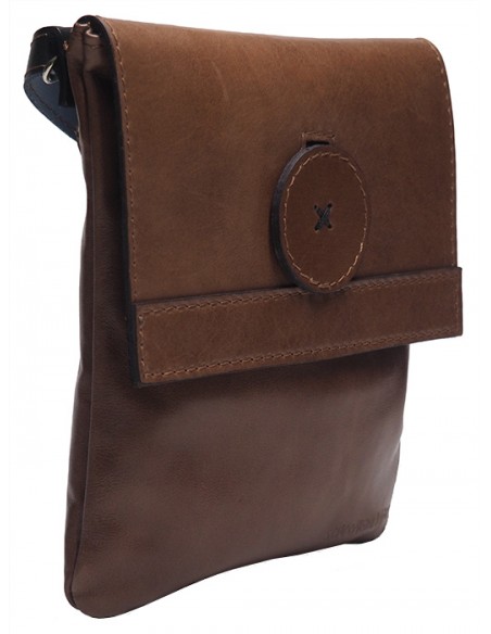 Compartimento principal cerrado con solapa que a su vez se cierra con un botón que pasa por un pasador.