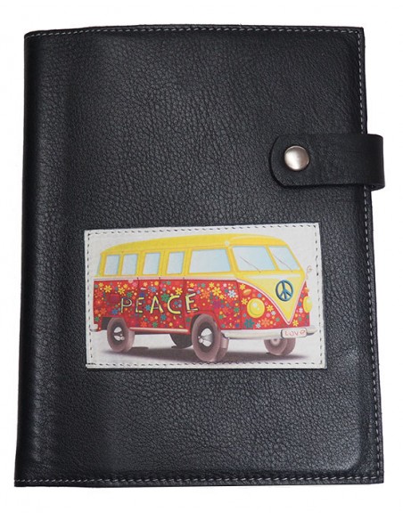 Funda para cuadernos fabricados en piel con un motivo decorativo impreso.