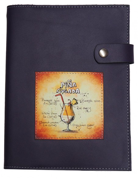 Funda para cuadernos fabricados en piel con un motivo decorativo impreso.