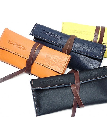 Étui à rouler en cuir tabac qui se compose d'une poche principale où le paquet est inséré et d'une autre poche pour mettre les filtres, plus léger ... et aussi une poche pour insérer le livret papier.