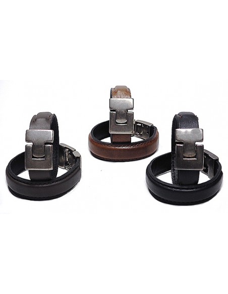 Bracelets en cuir pour hommes avec fermoir en zamak métallique plaqué argent.