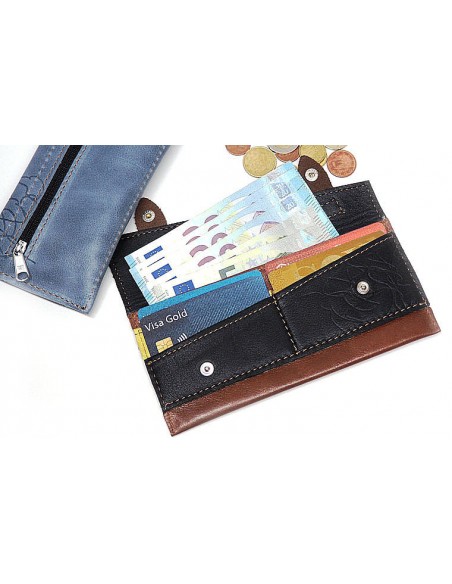 Porte-monnaie en cuir avec porte-cartes et portefeuille modèle Venise. Il sert également de blague à tabac roulante