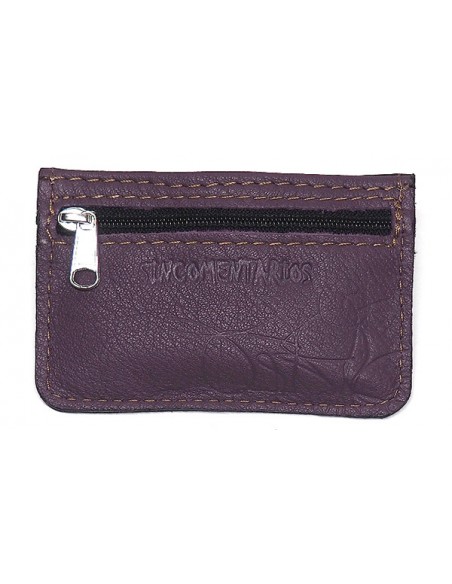 Porte-monnaie en cuir avec deux compartiments zippés, un de chaque côté.