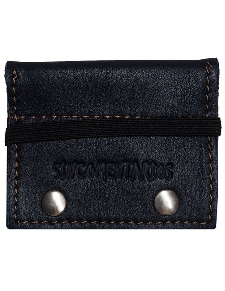 Porte-monnaie en cuir coloré avec un compartiment fermé par deux brochettes et un renfort élastique en caoutchouc. Pour que rien ne tombe