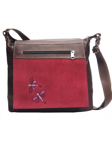 Sac à bandoulière en cuir souple et rabat en croûte de cuir.