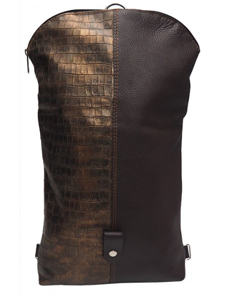 Sac convertible en sac à dos combiné avec du cuir imitation reptile gravé.